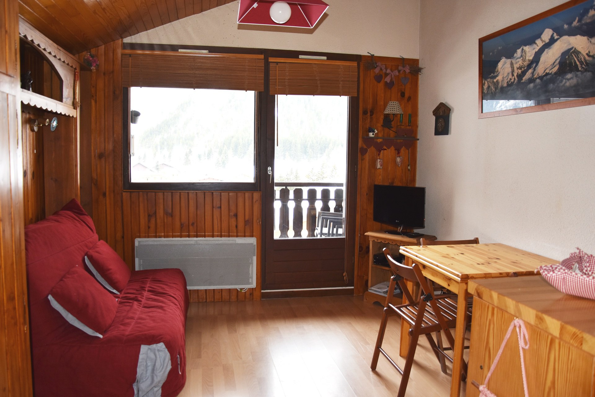Living-room with kitchenette (oven, fridge, ceramic hob), sofa bed (BZ 160 cm - 2 persons), television.
