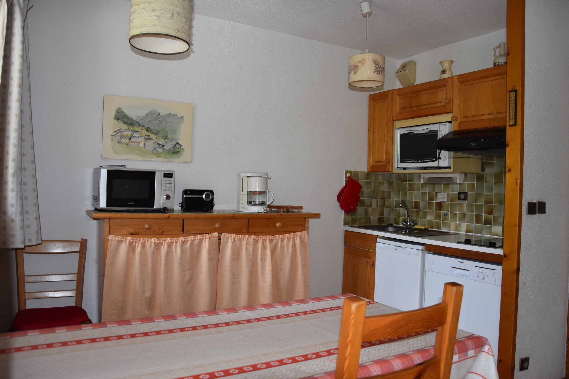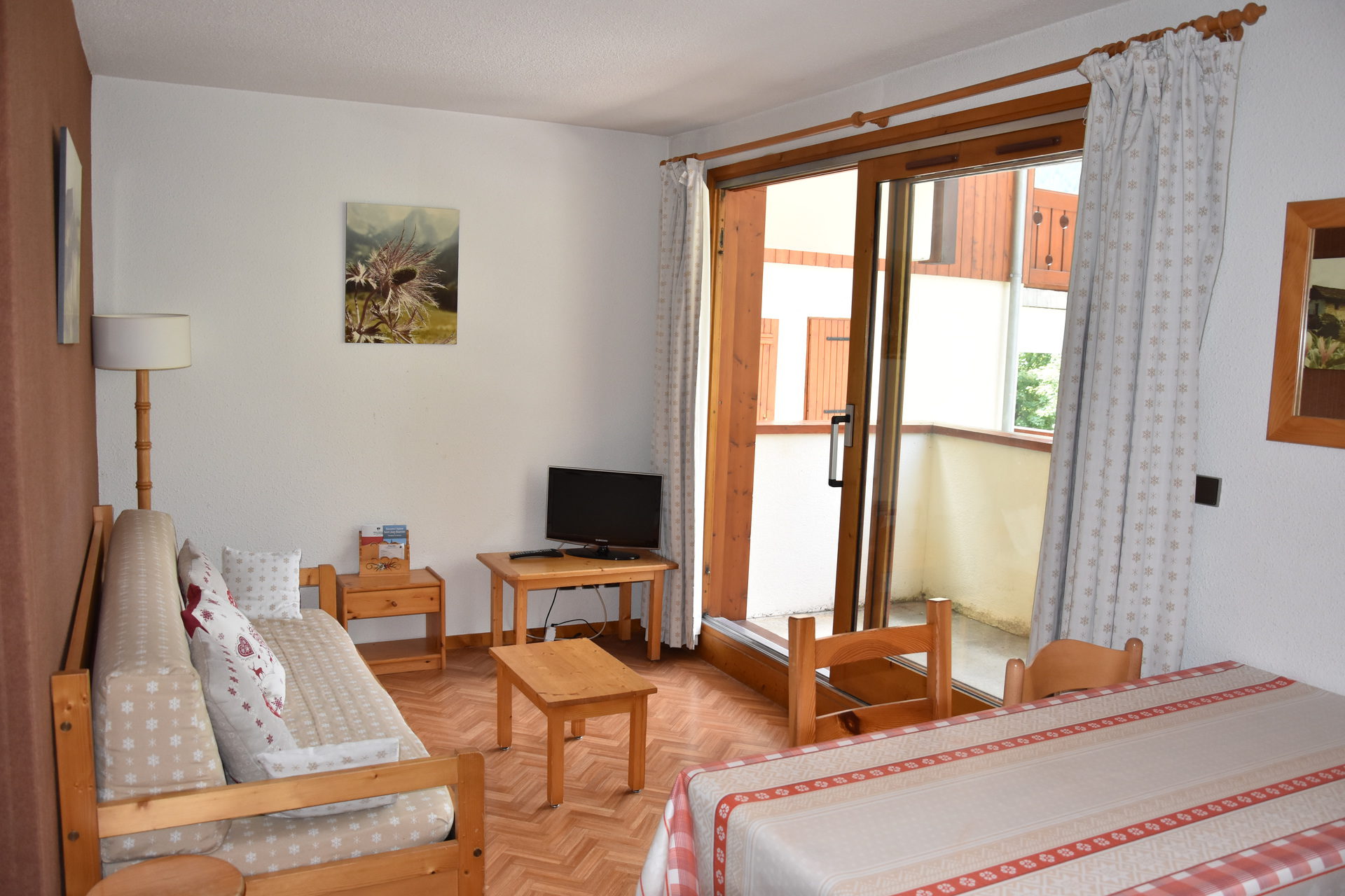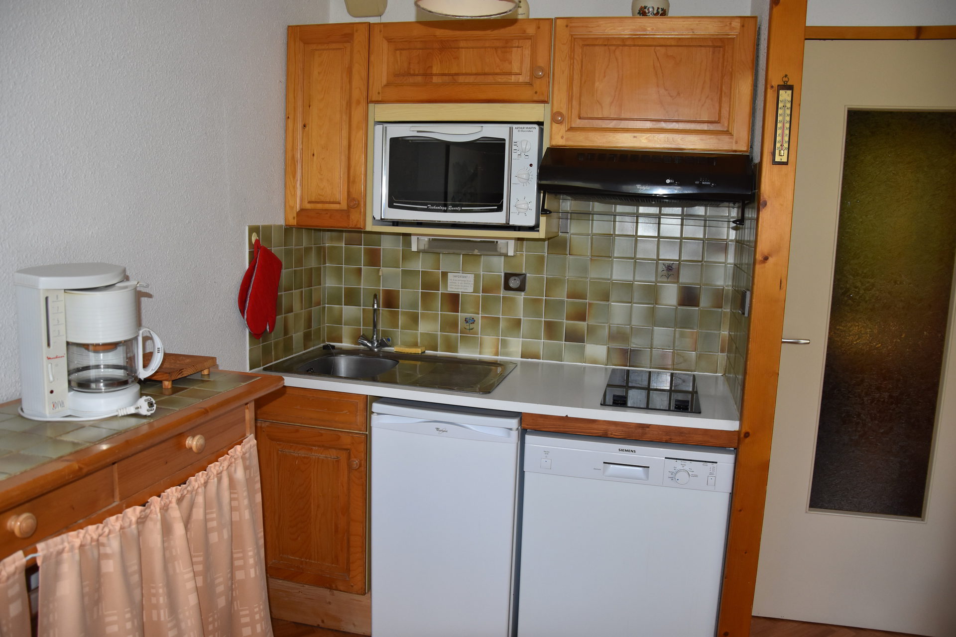 Living-room with Kitchen (oven, micro wave, fridge, dishwasher, washing-machine, electric hob) , television.