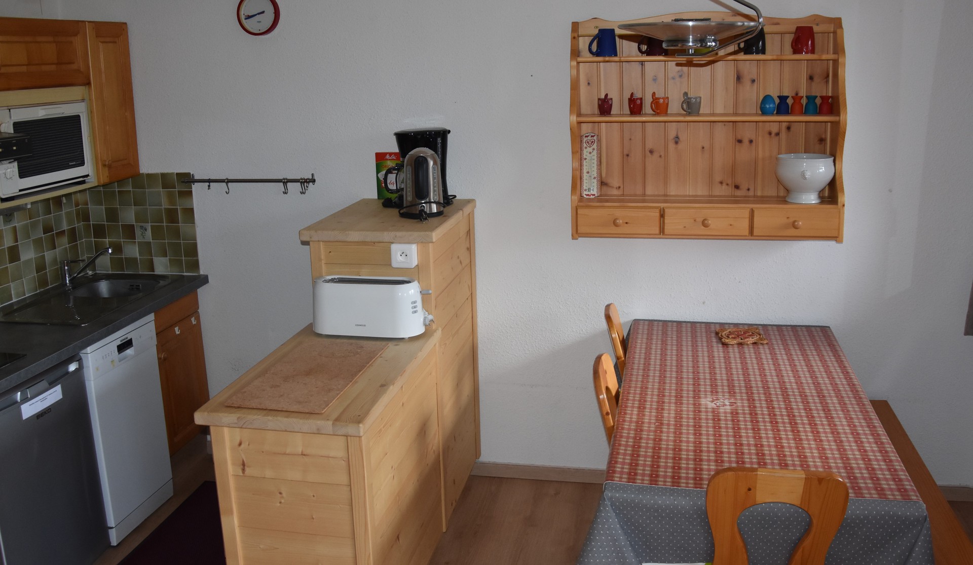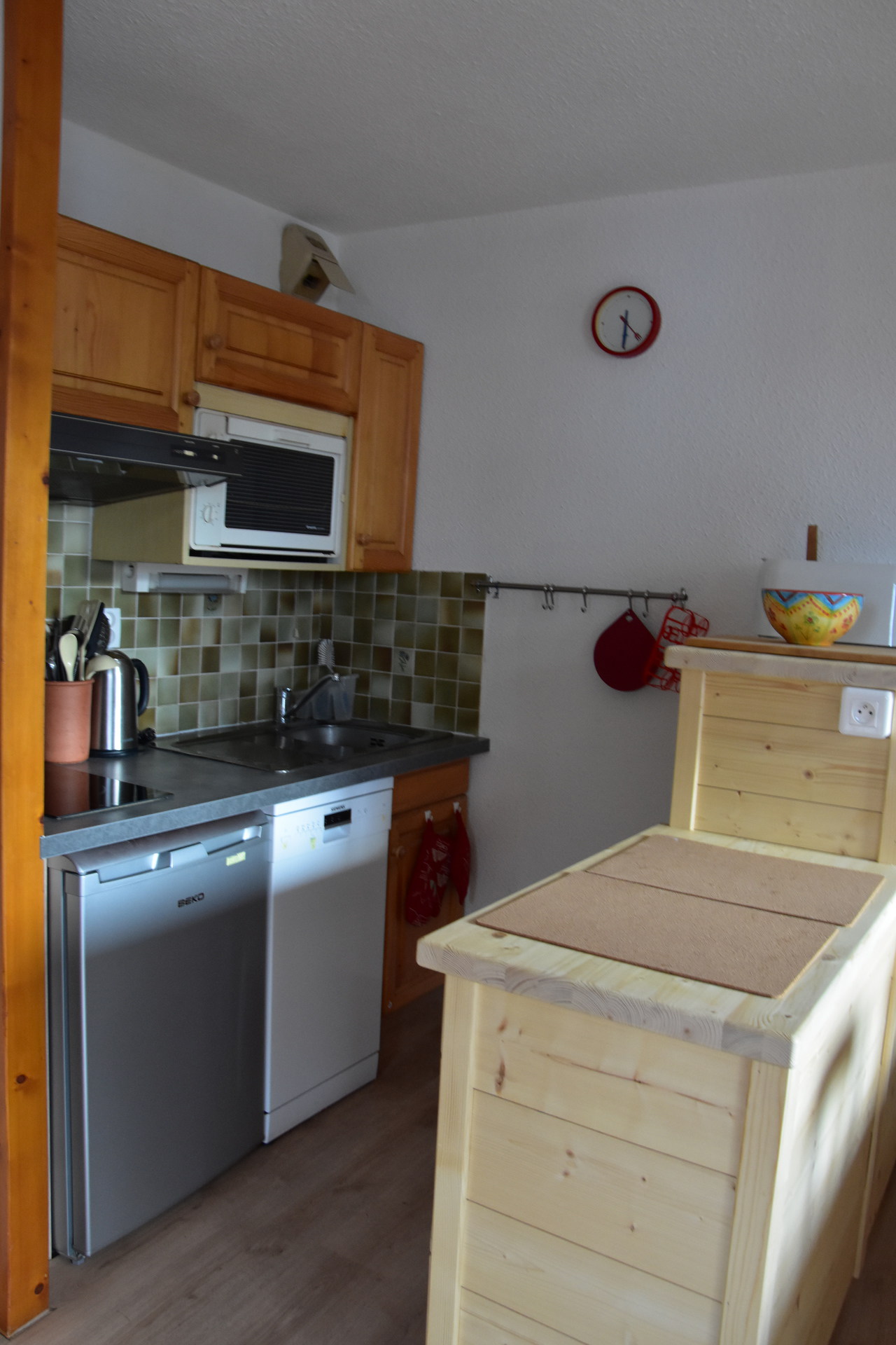Living-room with Kitchen (oven, micro wave, fridge, dishwasher, ceramic hob) , sofa (television).