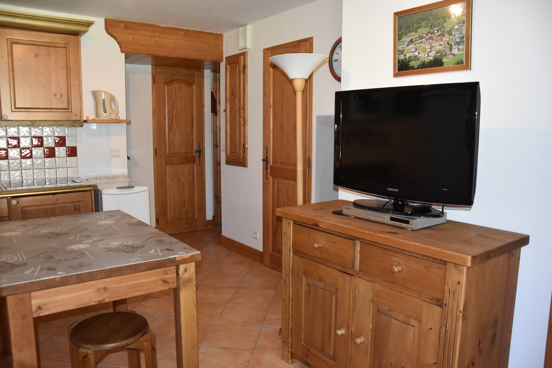 Séjour/cuisine (four, micro-ondes, frigo/congélateur, lave-vaisselle, plaque vitro céramique) banquette (télévision).